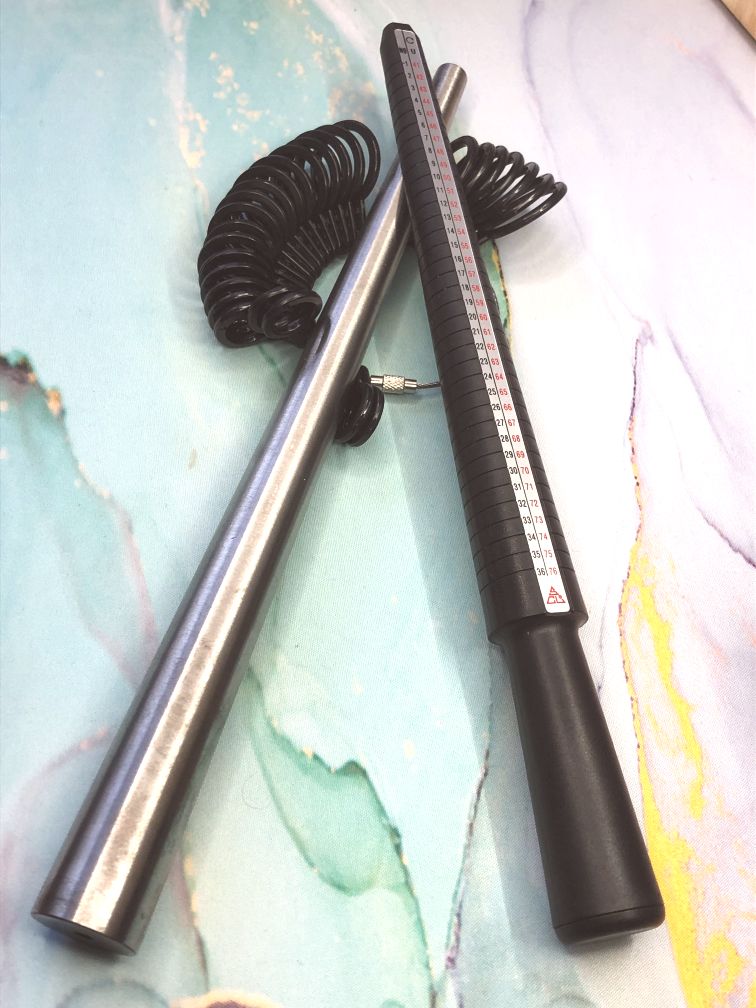 J’ai un deuxième triboulet à bague, en plastique celui-ci, qui est étagé avec les différentes tailles de bagues, dans des systèmes de mesures différents. C’est pratique pour connaitre la taille des bagues que vous avez créées.