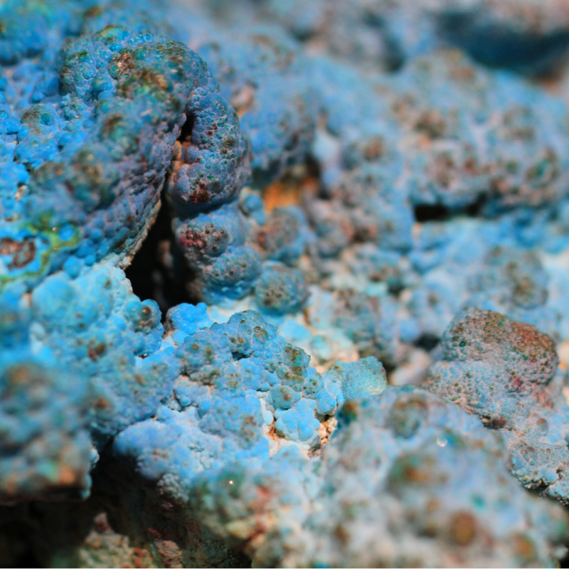 Ce qui différencie l’aragonite de la calcite, c’est la manière dont les atomes se fixent pour cristalliser. Tout dépend essentiellement de l’environnement dans lequel elles se forment. L’aragonite cristallisée se présente souvent comme une forme transparente, longiligne, avec des couleurs marron dans les interstices et dans les cristaux. En fonction des inclusions minérales microscopiques qu’elle contient , elle peut présenter des teintes violettes, vertes ou bleues… Et parfois d’ailleurs, on ne voit plus que ça ! Le plus souvent, les cristaux forment des étoiles en s’entrecroisant.