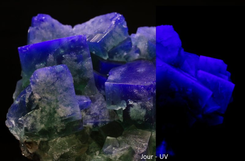 Elle peut contenir des traces d’autres composants comme le magnésium, l’aluminium, mais aussi de composés organiques qui influent sur la couleur de ses cristaux. Elle peut aller de l’incolore au noir en passant par toutes les couleurs possibles. Il en existe quelques variantes bicolores ou multicolores de très bel aspect. Certaines variétés ont la particularité de changer de couleur suivant la lumière, voire de la capter et de la restituer… C’est de cette propriété que vient le terme « Fluorescence »