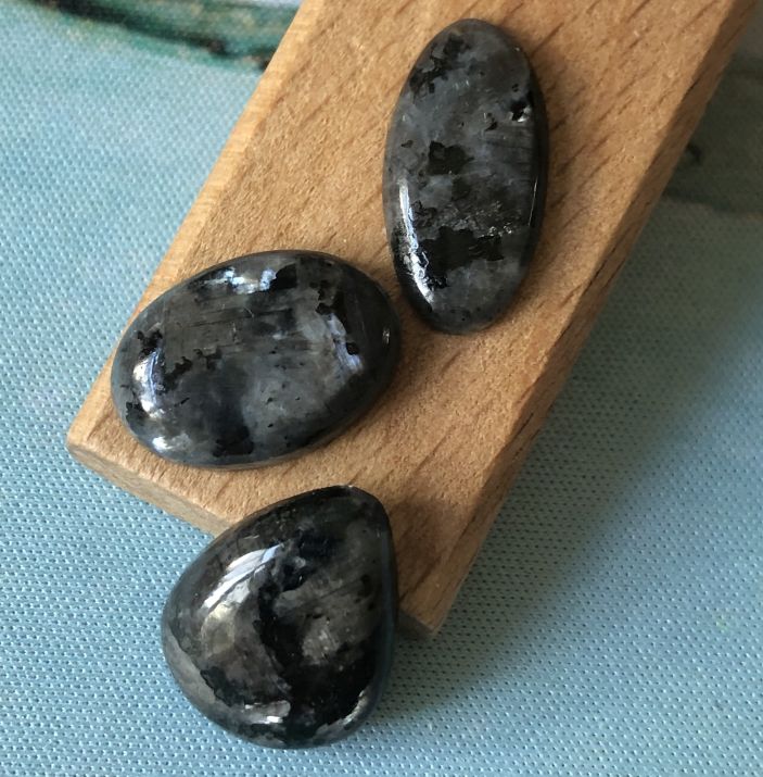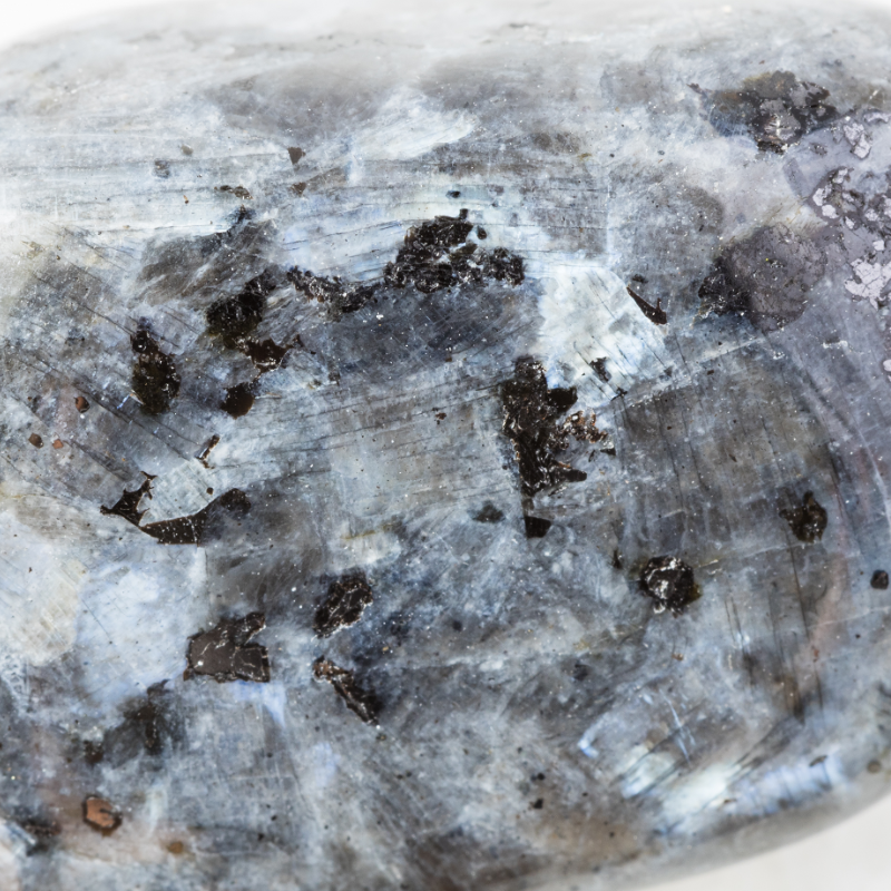 Pierre mystérieuse s’il en est, la Larvikite était autrefois confondue avec la Labradorite, voire même rapprochée de la Péristérite. Et ce n’est pas pour rien, car elles sont de la famille des Feldspath. Grise ou noire, la Larvikite peut aussi être bleue. Mais surtout, elle présente le même effet Shiller (irisations caractéristiques) que ses cousines, avec des reflets souvent noirs, gris, argentés ou bleus. C’est une pierre à la fois discrète et surprenante grâce à ses irisations.
