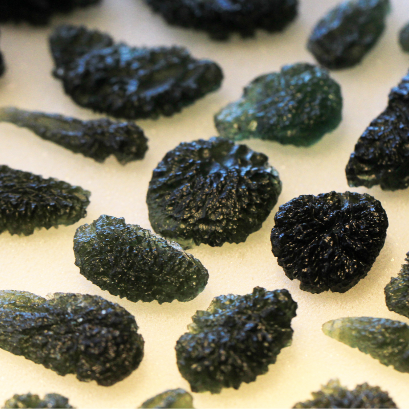 Attention tout de même à ce qu’on appelle la « moldavite africaine ». Il s’agirait en réalité d’un verre manufacturé.