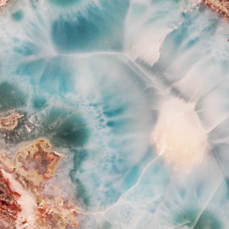 Comme toutes les pectolites, le Larimar est composé de silicium, de calcium et de sodium. C’est le cuivre qui va lui donner sa couleur bleue si caractéristique. Le cuivre est anti-infectieux et virucide, et contribue à la production d’immunoglobuline. Mais en cas d’infection, il est très vite consommé par le corps et peut venir à manquer rapidement. Il est également anti-inflammatoire et contribue à beaucoup de fonctions telles que la production de défenses naturelles, d’hémoglobine, de collagène, de mélanine, d’anti allergène…