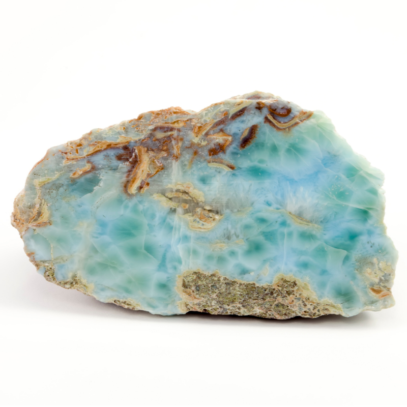 Le Larimar est une variété de pectolite dont la couleur bleue vous projette immédiatement dans les eaux limpides des Caraïbes. Il symbolise le bonheur et l’harmonie. C’est la pierre emblématique de la République Dominicaine. Avant 1976 et l’exploitation de ce gisement unique au monde, il était possible de ramasser de petits larimars sur la plage de Bahoruco. Les enfants les collectionnaient dans des bouteilles, ou les revendaient aux visiteurs.