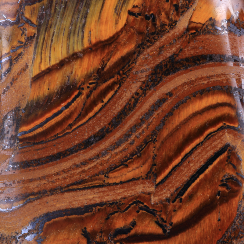 L’œil de taureau est, comme lœil de tigre et l’œil de faucon, une variété de quartz bien particulière et encore pleine de mystères. Les théories sur sa composition divergent, parfois même sur les sites ou les livres de référence. Ses couleurs sont dues à l’altération des inclusions fibreuses de crocidolite, qui est de la même famille que les amiantes. Rassurez-vous : sous cette forme elle est neutre et sans danger.