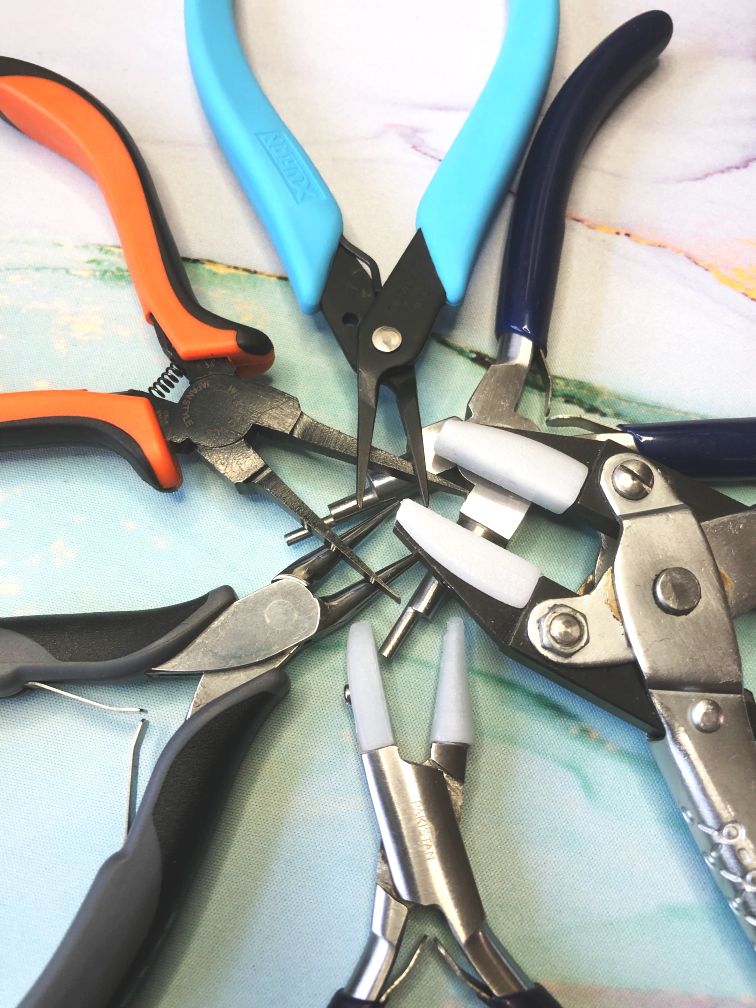 L’autre série de pinces indispensables aux travaux de wire wrapping sert à réaliser les formes de votre création. Comme pour les pinces coupantes, il est important de savoir exactement à quoi vous souhaitez les utiliser pour choisir celles qui vous accompagneront dans vos travaux. Pour réaliser mes créations, j’ai choisi 3 sortes de pinces différentes.