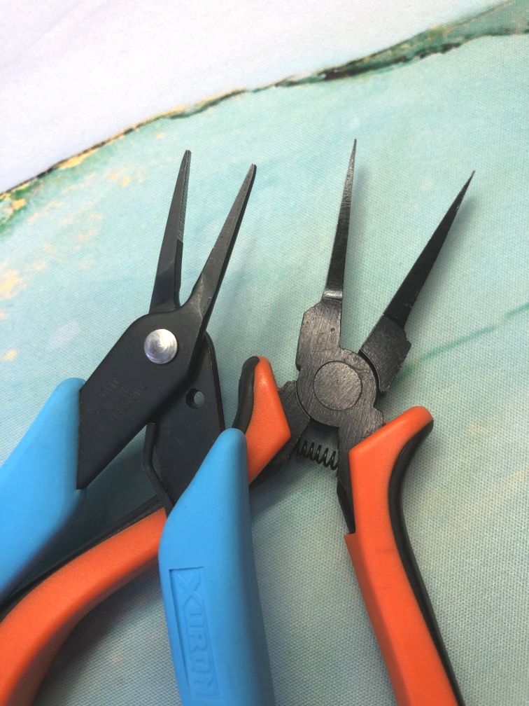 Pour les pinces en métal, soyez attentif à l’achat sur l’état de surface de vos pinces. Vous pouvez choisir des mors parfaitement lisses, et d’autres striés ou texturés. Tout dépendra de l’effet que vous voulez mettre à vos métaux. Je préfère les pinces lisses, mais j’ai aussi une pince plate dont les mors sont striés, qui m’apporte une meilleure préhension des fils.