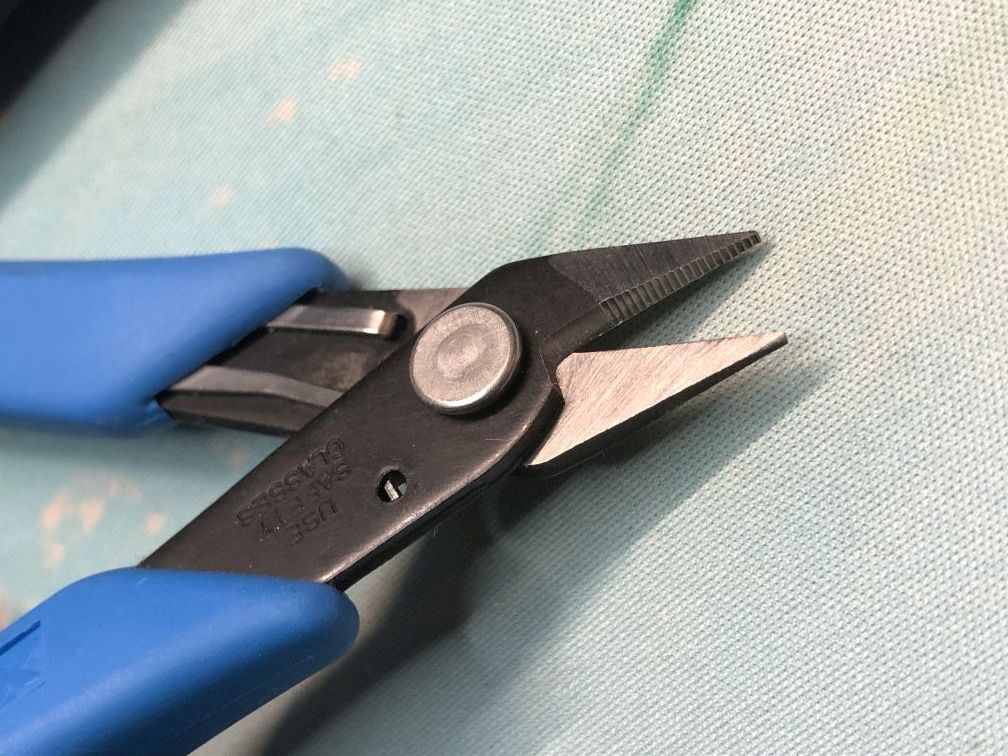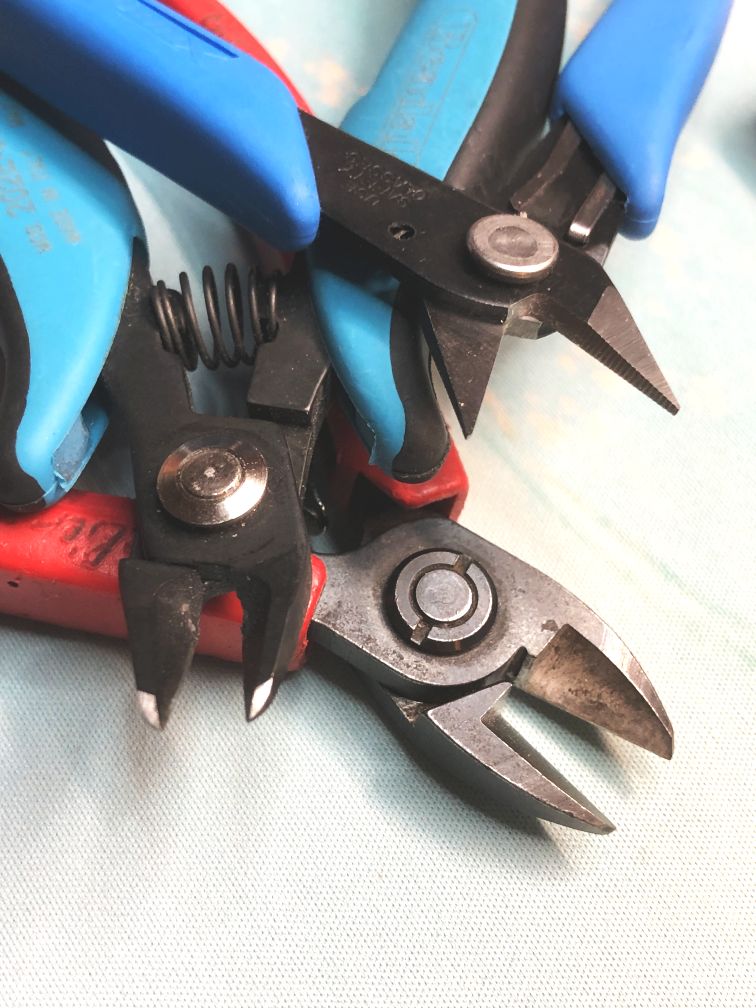 Dans certaines phases de votre travail, vous aurez besoin de réaliser une coupe franche et parfaitement droite de vos fils. C’est pourquoi je vous conseille d’avoir une deuxième pince coupante, plus fine.