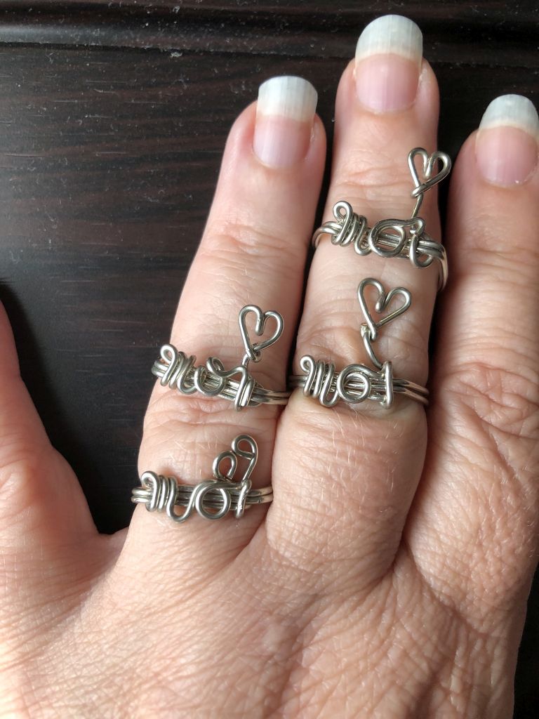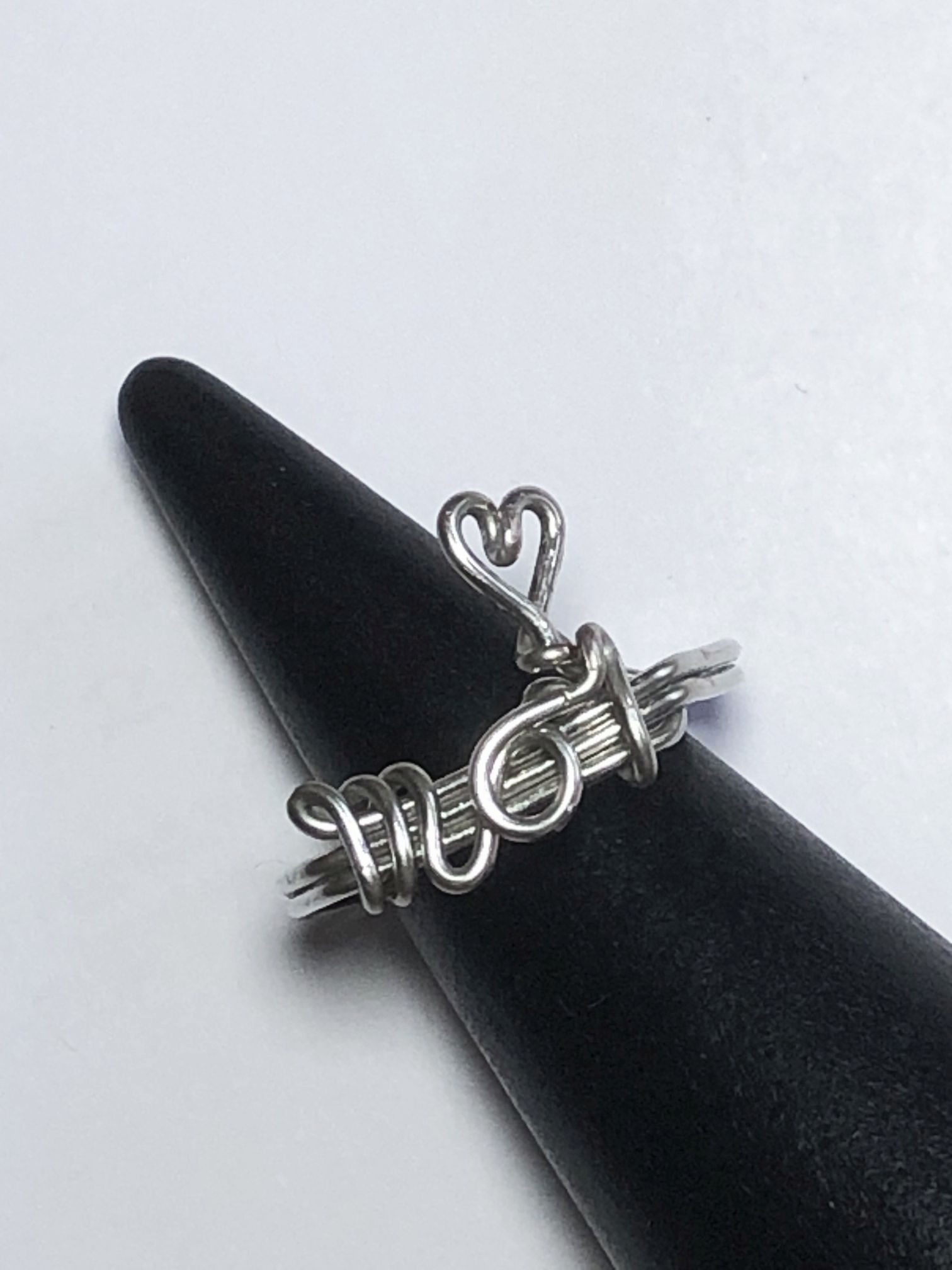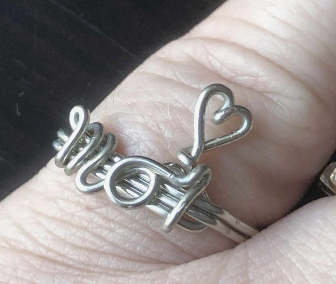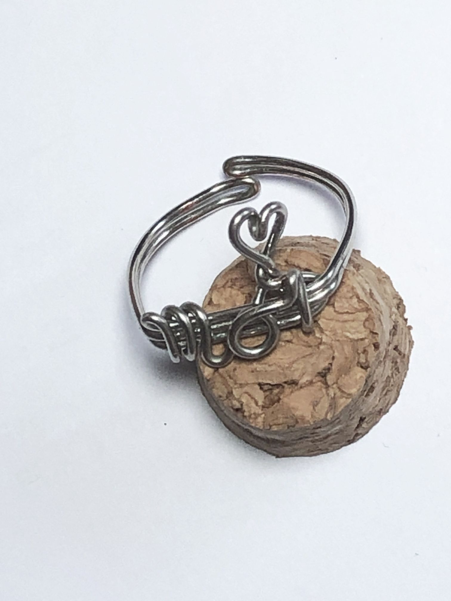 Bague en cuivre argenté réglable, avec le motif « moi » sur le dessus.