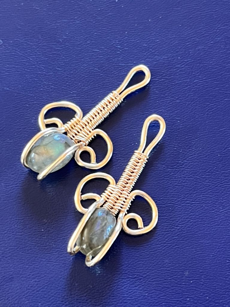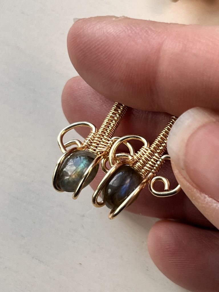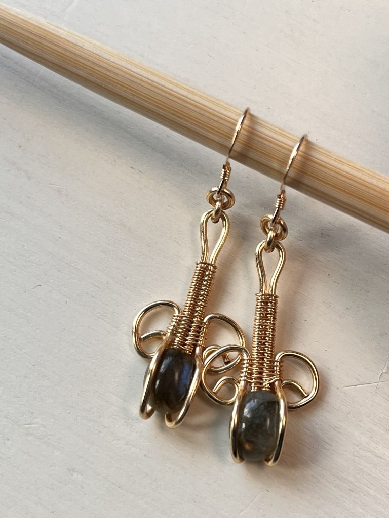 Boucles d’oreilles en labradorite et cuivre doré – Éclat Mystique ✨