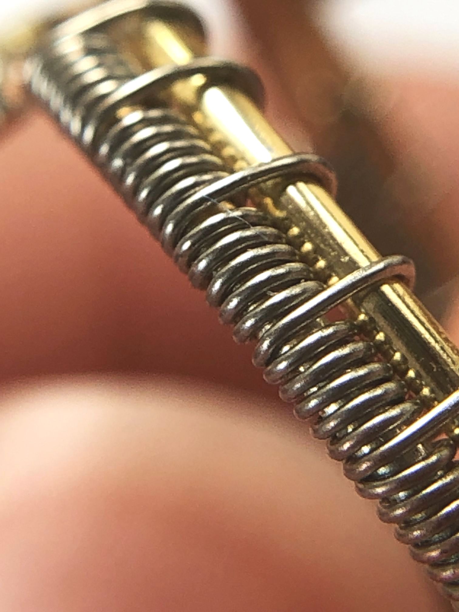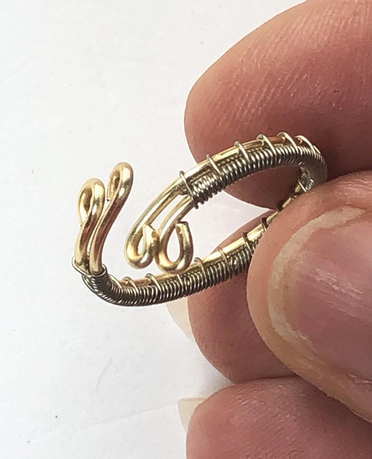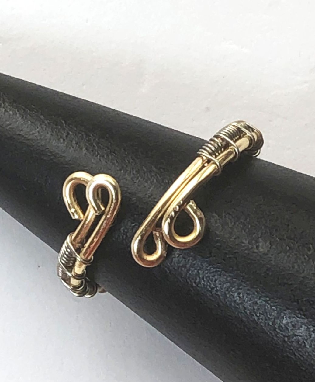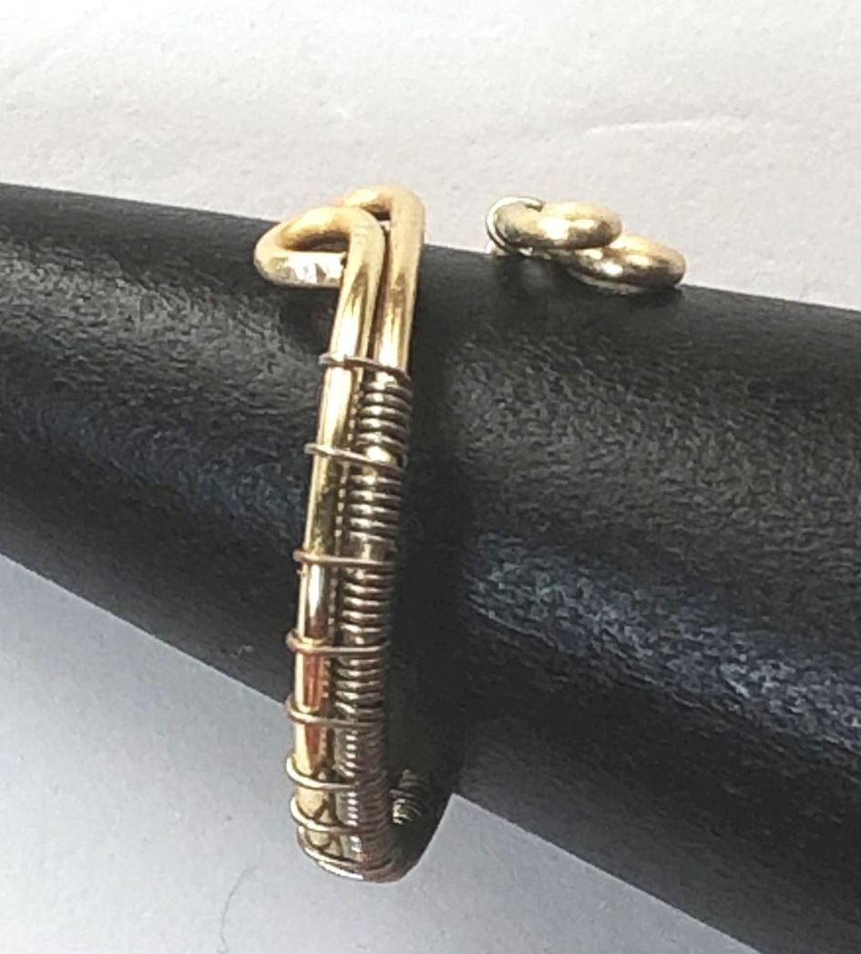 Bague réglable en cuivre doré au tissage argenté.