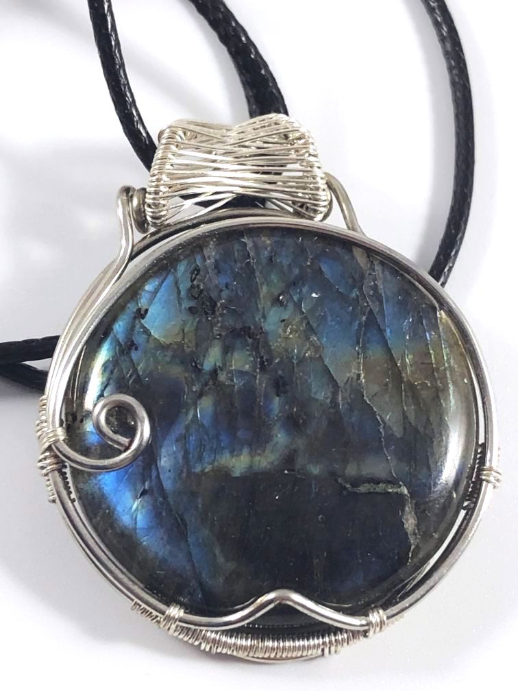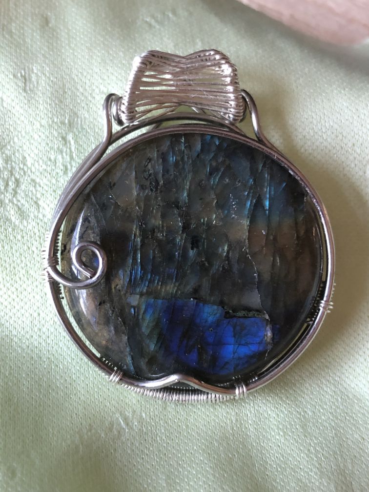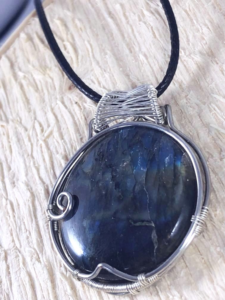 La pierre de ce pendentif est très lumineuse et surprenante par ses reflets bleus.