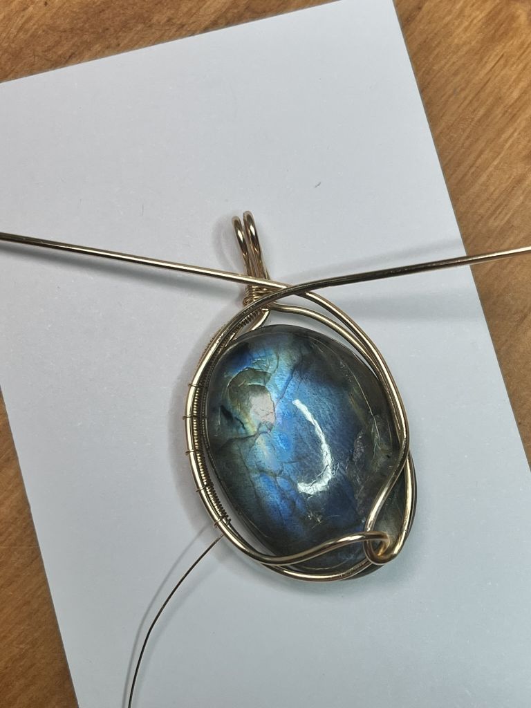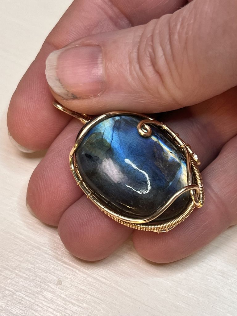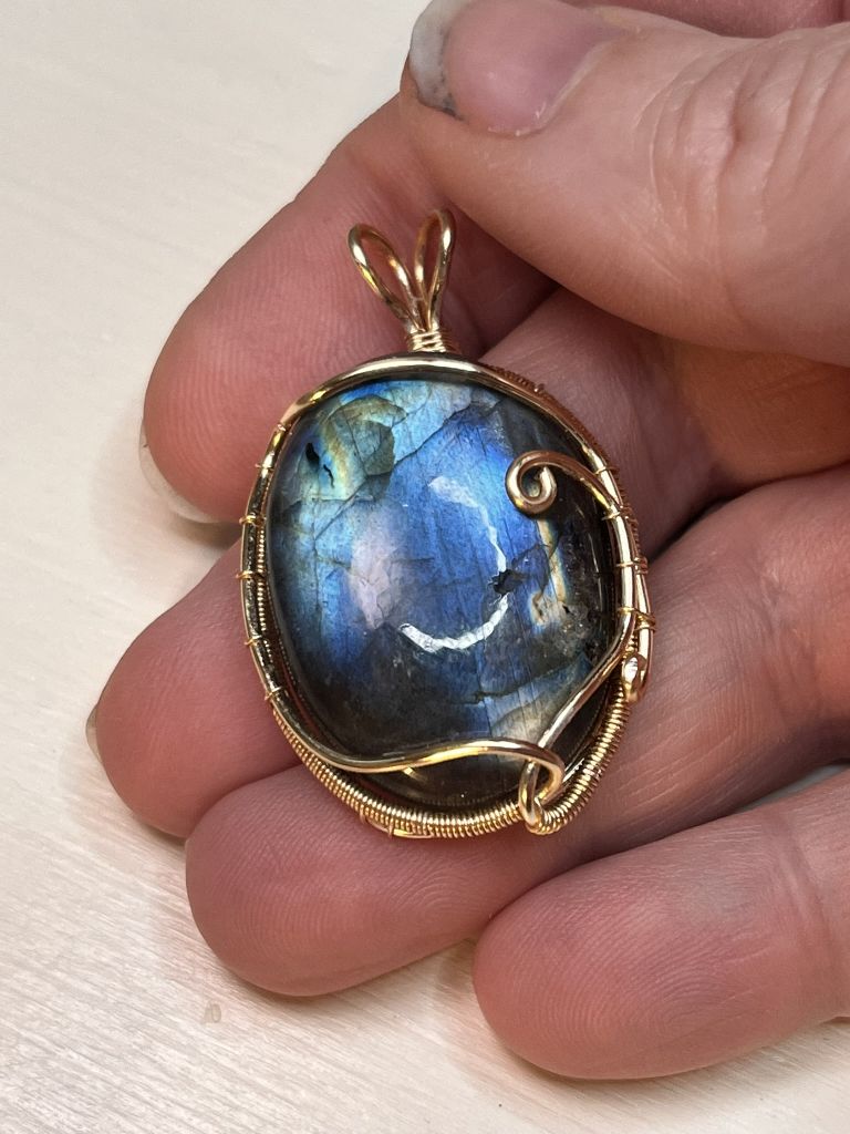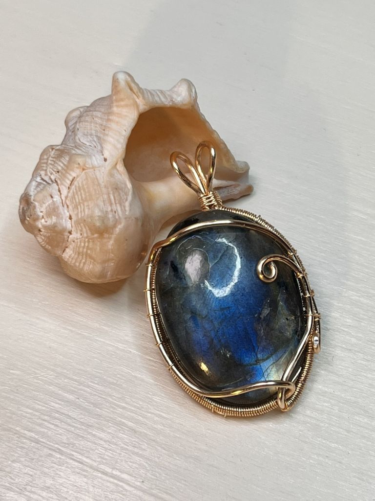Pendentif « Reflet d’Azur » – Labradorite & Cuivre Doré