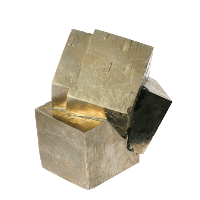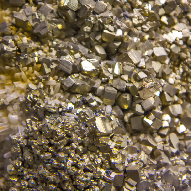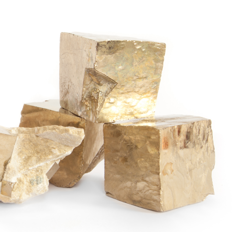 Il existe de nombreuses variétés de pyrites. Les cristallisations et les couleurs dépendent des minéraux qu’elles contiennent. La plus courante est la pyrite de fer, aux cristaux cubiques et dorés. C’est un disulfure de fer. Elle contient donc principalement du fer et du soufre.