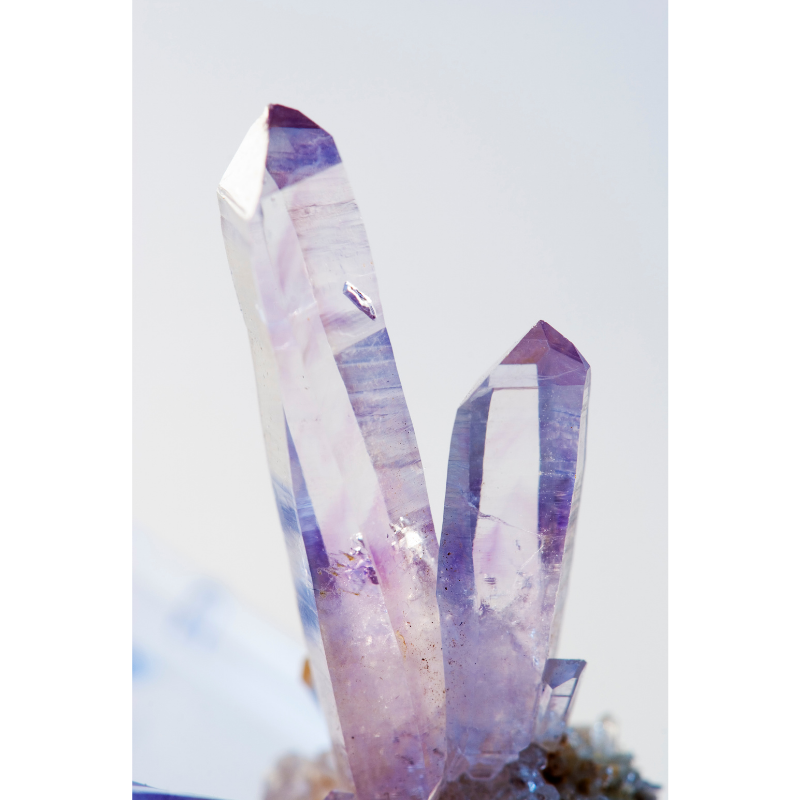 La transparence des quartz macrocristallins permet également d’observer à l’œil nu la croissance d’un cristal. Oui ! pendant sa formation, le quartz croît ! La matière se forme progressivement, prolongeant les cristaux existants, les croisant, les associant les uns aux autres. C’est comme cela également qu’ils entourent d’autres minéraux déjà existants dans leur environnement.