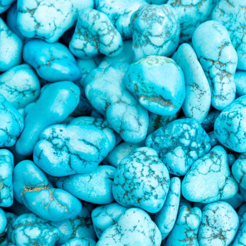La turquoise est utilisée pour lutter contre le bégaiement, les problèmes de toux, de maux de gorge ou d’asthme. Elle reconstitue et revitalise les tissus et aide par exemple à lutter contre la cataracte, les crampes ou les déchirures musculaires. Elle renforce les yeux, le foie et les glandes. Elle est détoxifiante et aide à combattre les douleurs articulaires.